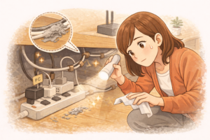 配線まわりはホコリがたまりやすく、放っておくと発熱や火災の原因にもなります。