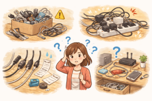 また、使わなくなった古い充電器やケーブルがあれば、思い切って処分するのもポイント。増やすだけでなく「見直して減らす」ことが、スッキリを保つコツです。