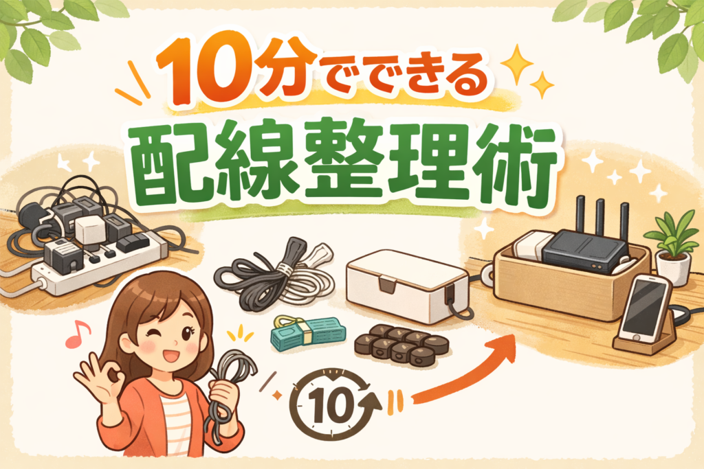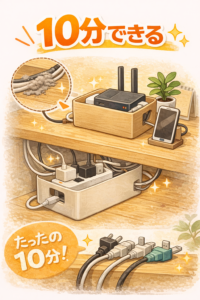 このページでは、「配線整理って難しそう…」と感じている初心者さんでも安心して取り組めるように、たった10分でできるステップをご紹介します。使う道具も身近なものばかりで、特別な技術や準備は必要ありません。